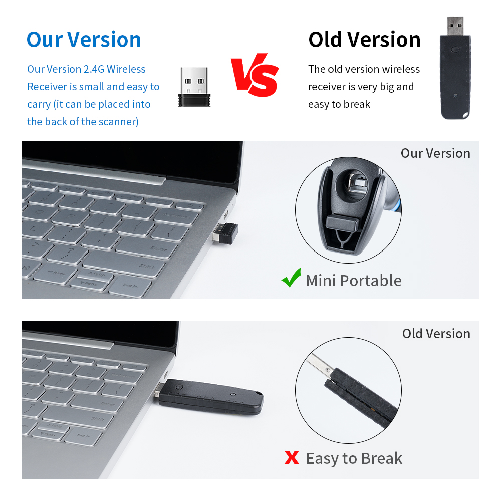 Continuous Scan Mode: The scan light stays on continuously when the scanner is powered on, allowing hands-free scanning without pressing any button.